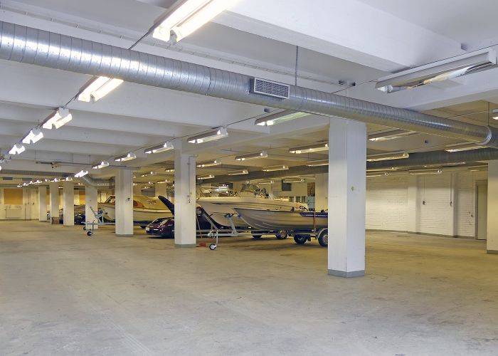 Lokalen är ca 27 m djup (från port till bakre vägg) och ca 15 m bred i den inre delen av lokalen (se ritning)