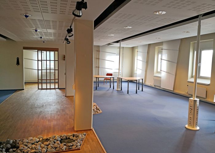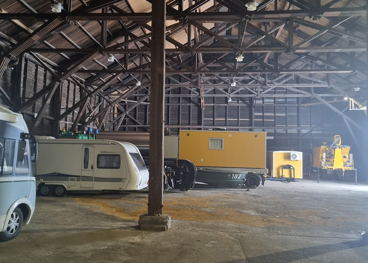 Lokalen är ca 27 m djup (från port till bakre vägg) och ca 15 m bred i den inre delen av lokalen (se ritning)